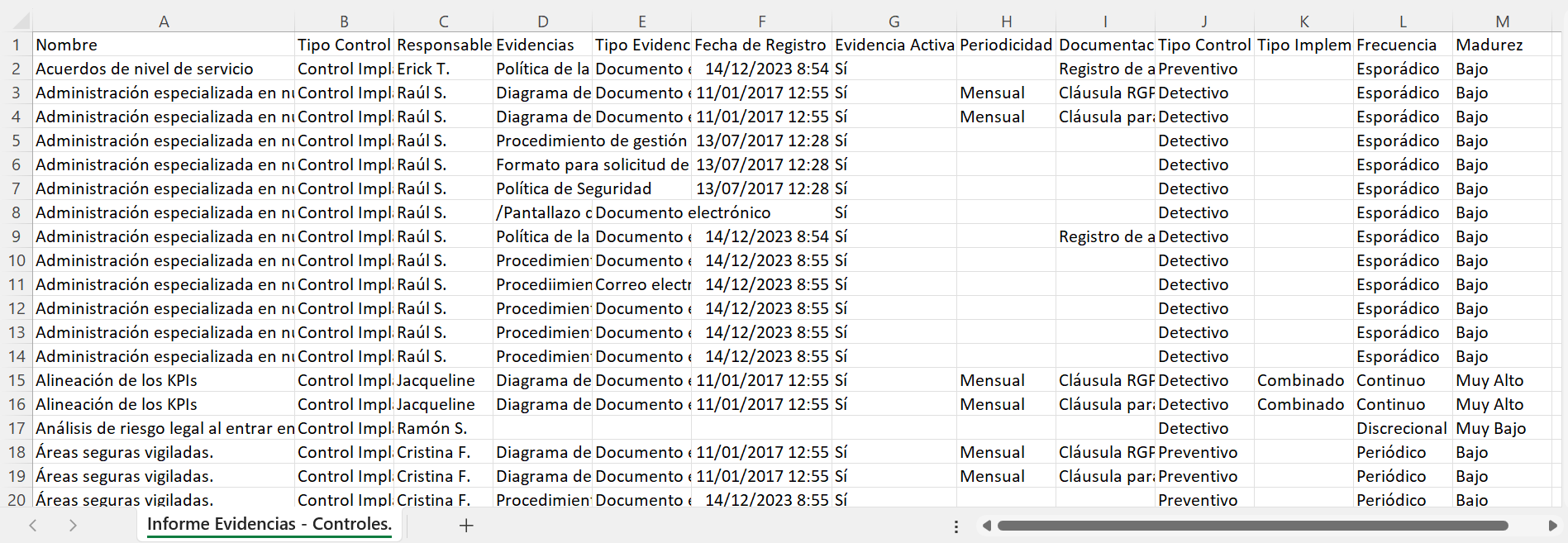 Se visualizarán tanto la información de las evidencias como la correspondiente a los controles y sus dimensiones.