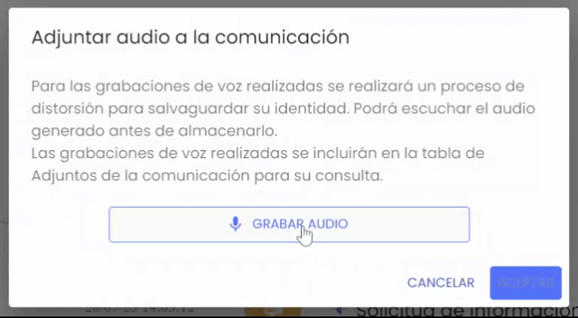 Antes de almacenar la grabación, se realiza un proceso de distorsión de la voz para garantizar la privacidad y anonimato del denunciante.