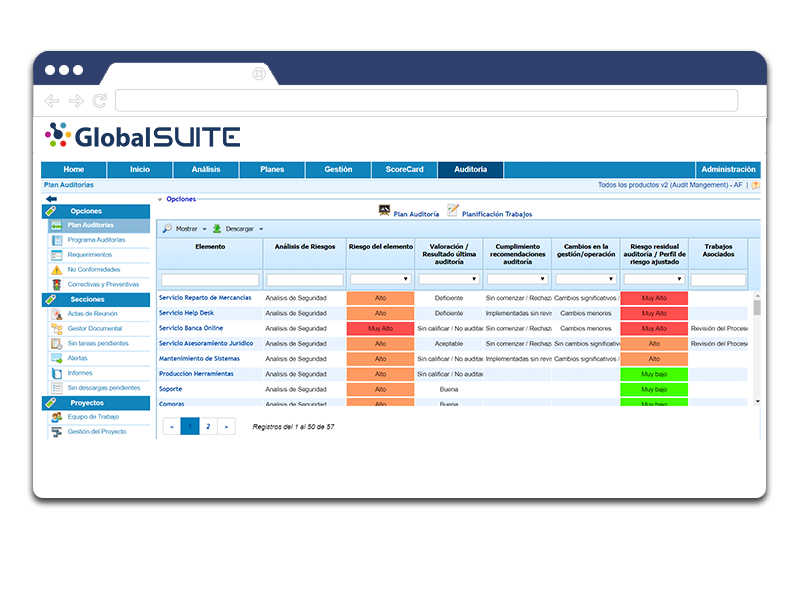 - Informe Excel con el detalle de Elementos, Riesgos, Controles, Papeles de Trabajo, Requerimientos y resultados obtenidos en la ejecución del trabajo.