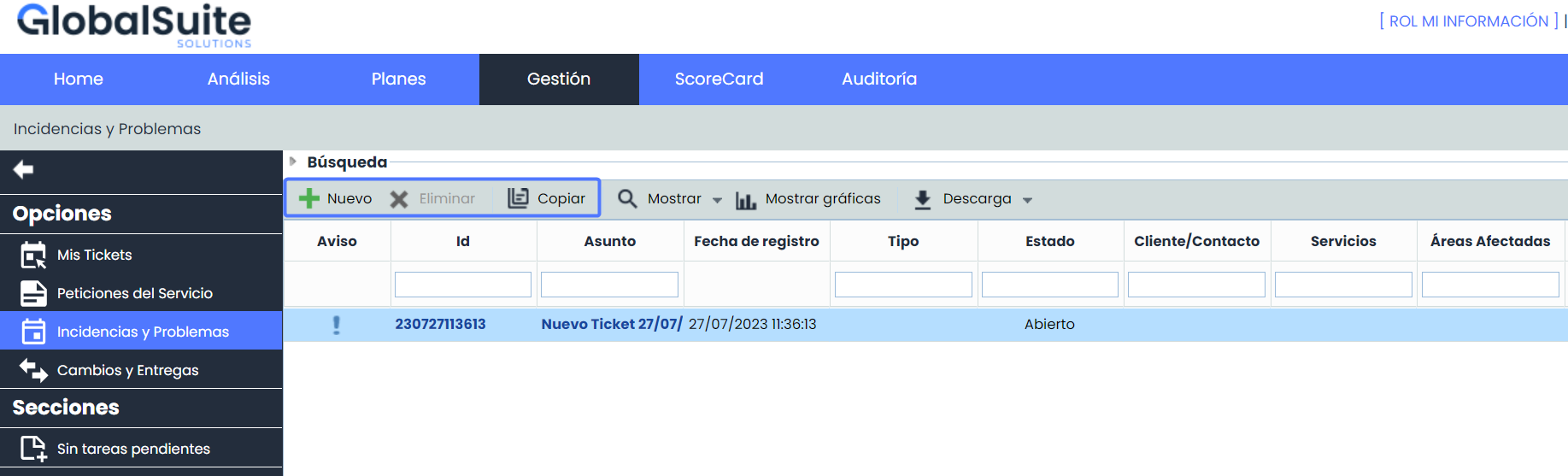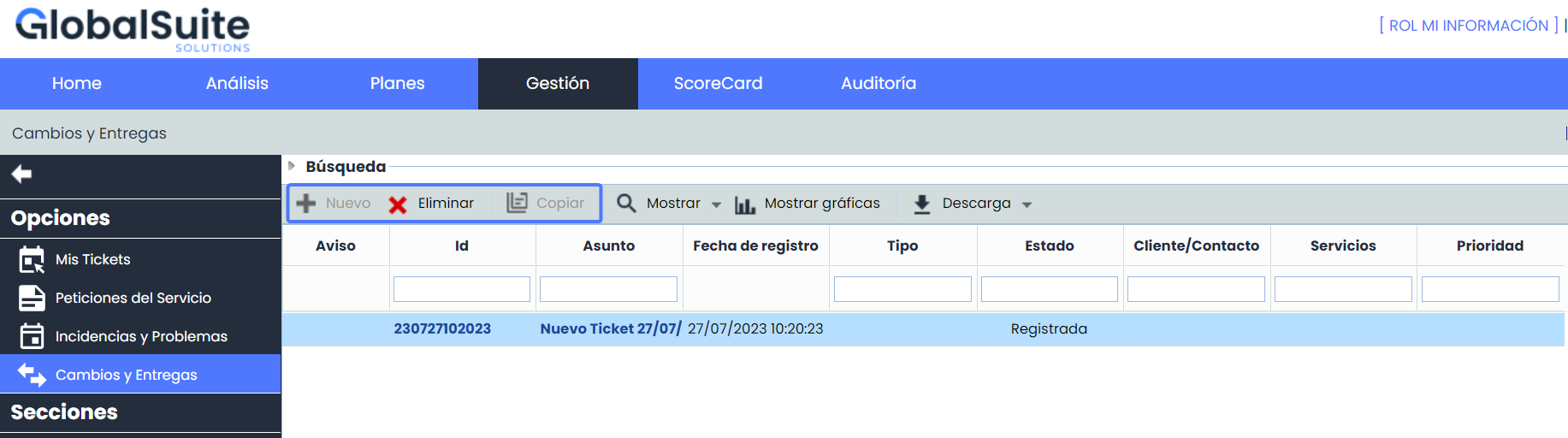Esta funcionalidad mejora la seguridad y la eficiencia del sistema de Ticketing, ya que se podrán gestionar los privilegios de los usuarios con acceso a Mi Información, evitando posibles errores o cambios no deseados los distintos tipos de tickets. Esto brinda un mayor control sobre quiénes pueden crear o eliminar tickets y qué tipo de tickets pueden manipular.